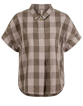 Die Bluse aus leichter, reiner Baumwolle mit Vichykaro hat eine modisch verkürzte, lockere Passform mit überschnittenen Schultern, einer Polo-Knopfleiste mit Falte und abgerundetem Saum. Der kleine Kragen und kurze Ärmel vervollständigen den sommerlich sportlichen Look. Der Baumwollstoff wurde in Deutschland gewebt.