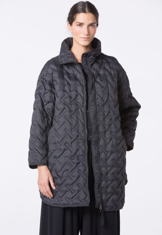 Wir lieben sie: Die OSKA Outdoorjacke 401 wurde aus leichtem, wattierten Shell-Material mit geprägtem Fischgrat-Muster gefertigt und hat eine gerade und lässige Passform. Sie hat einen warmen Stehkragen, einen Statement-Reißverschluss vorne und seitliche Eingriffstaschen. Die Jacke ist hüftbedeckend und am Saumabschluss gerundet, was für einen schönen Fall sorgt. Eine praktische und wasserabweisende Jacke für kalten Tage.