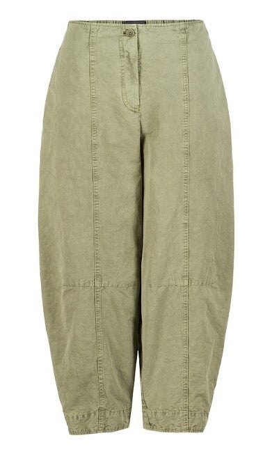 Die Cropped-Hose ist aus einem robusten Baumwoll-Leinen-Gemisch genäht. Der modische Style ist am Bein weit geschnitten und verjüngt sich zum Knöchel hin, wodurch ein entspanntes Volumen entsteht. Seitliche Einschubtaschen, breite Steppstepp-Teilungsnähte, ein elastischer Bund am Rücken und ein Reißverschluss mit Knopf unterstreichen den sportlichen Look der bequemen Hose. Für einen modernen Look kombinieren Sie diese Hose mit einer Jacke aus dem gleichen Stoff.