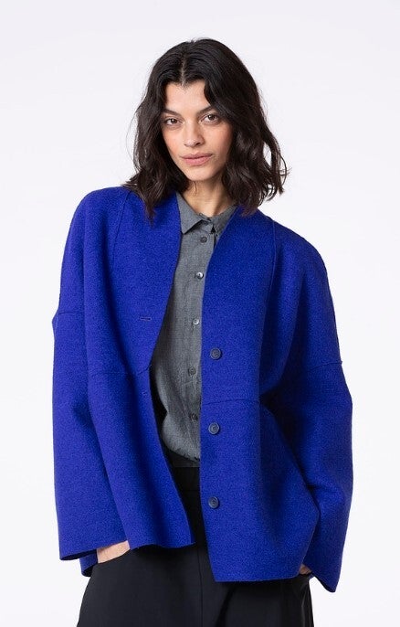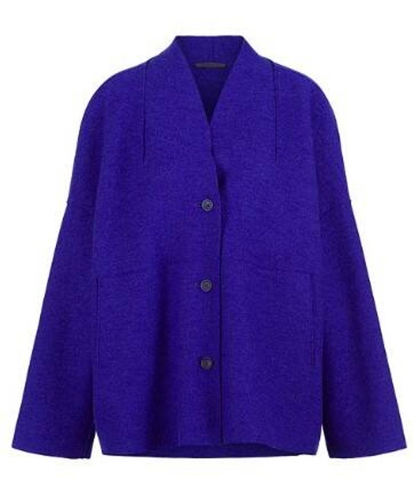 Diese OSKA Walkjacke aus feiner Schurwolle besticht durch ihre lässige Silhouette und den extravaganten Schnitt. Das großzügige Modell reicht bis über die Hüfte und hat weit überschnittene Schultern. Ein Schalkragen und eingearbeitete Taschen runden den minimalistisch-modernen Stil ab. Unser OSKA Walk sorgt für ein sehr angenehmes Tragegefühl und macht die Outdoorjacke langlebig.