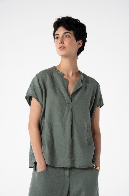 Leichtes OSKA-Leinen aus chinesischer Produktion, Färbung in Tschechien als fertiges Kleidungsstück für einen schönen Farbeffekt. Mögliche Unregelmäßigkeiten in der Färbung sind ein gewünschter Effekt und keine Mängel. 100% Naturfasern, Naturfasern sind nachwachsende Rohstoffe.