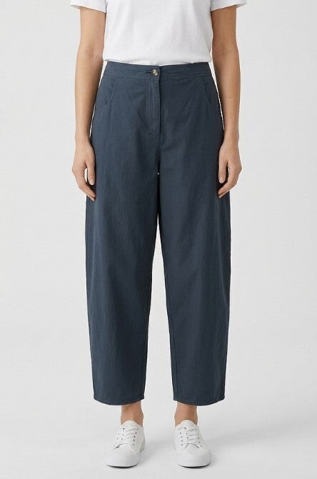 Die knöchellange Hose aus kompakter Baumwolle mit feinen Streifen überzeugt auf ganzer Linie. Sie verfügt über die klassischen Jeans-Taschen und wird durch eine Passe sowie eine aufgesteppte Gesäßtasche auf der Rückseite ergänzt. Doppelt gesteppte Nähte betonen den sportlichen Look. Die Hose hat eine lockere, bequeme Passform mit weitem, leicht gerundetem Bein und kann nicht nur diese Saison getragen werden.