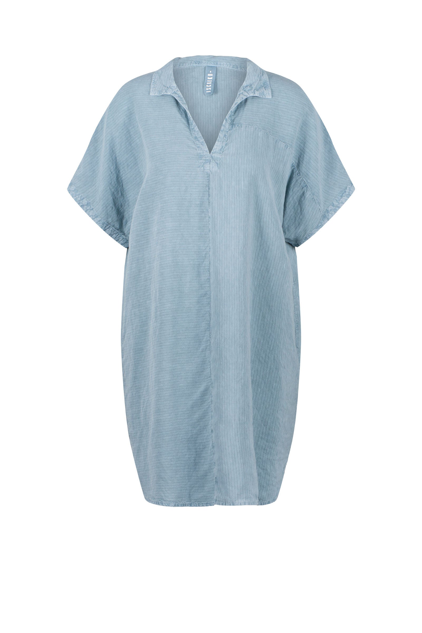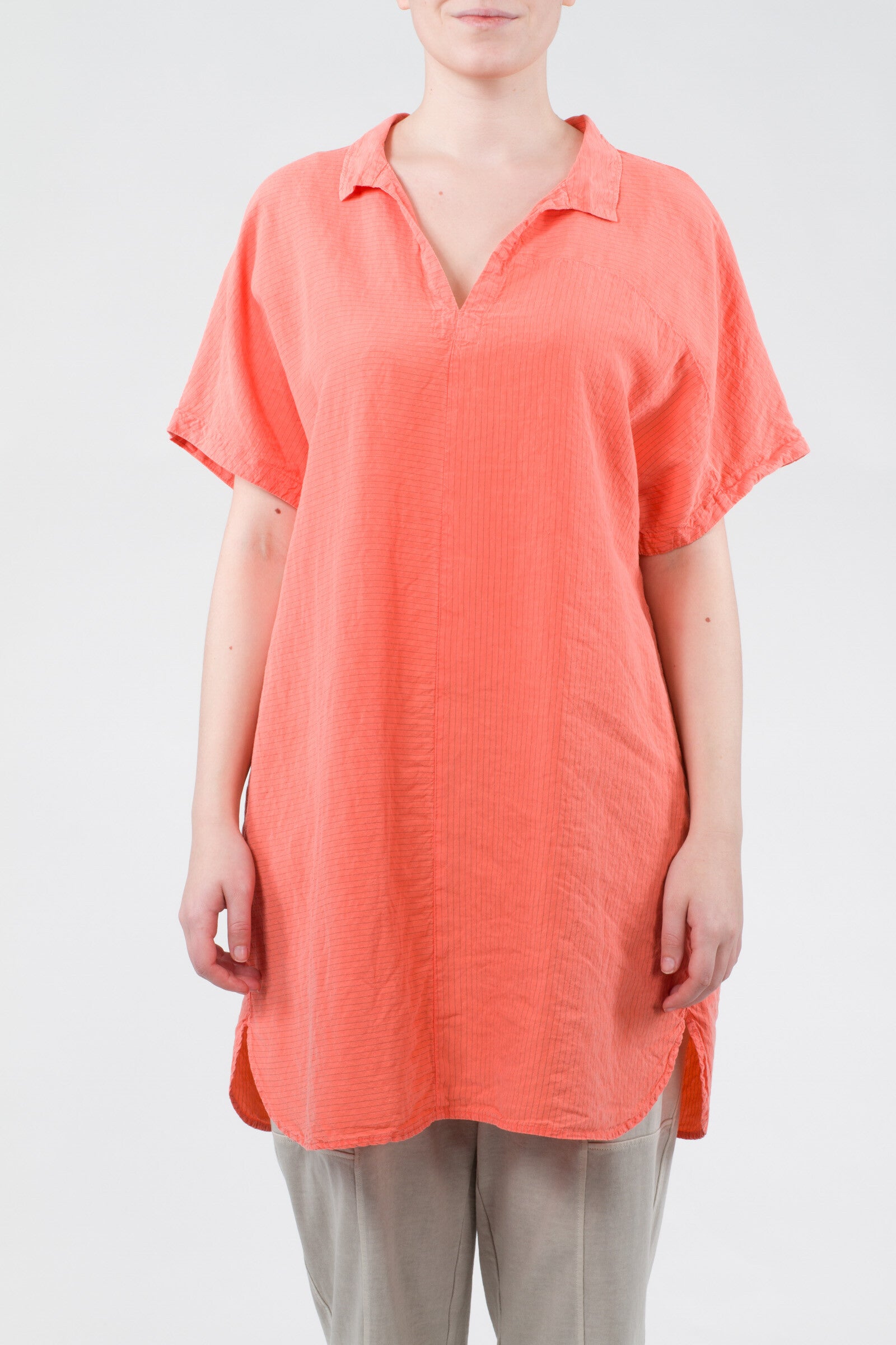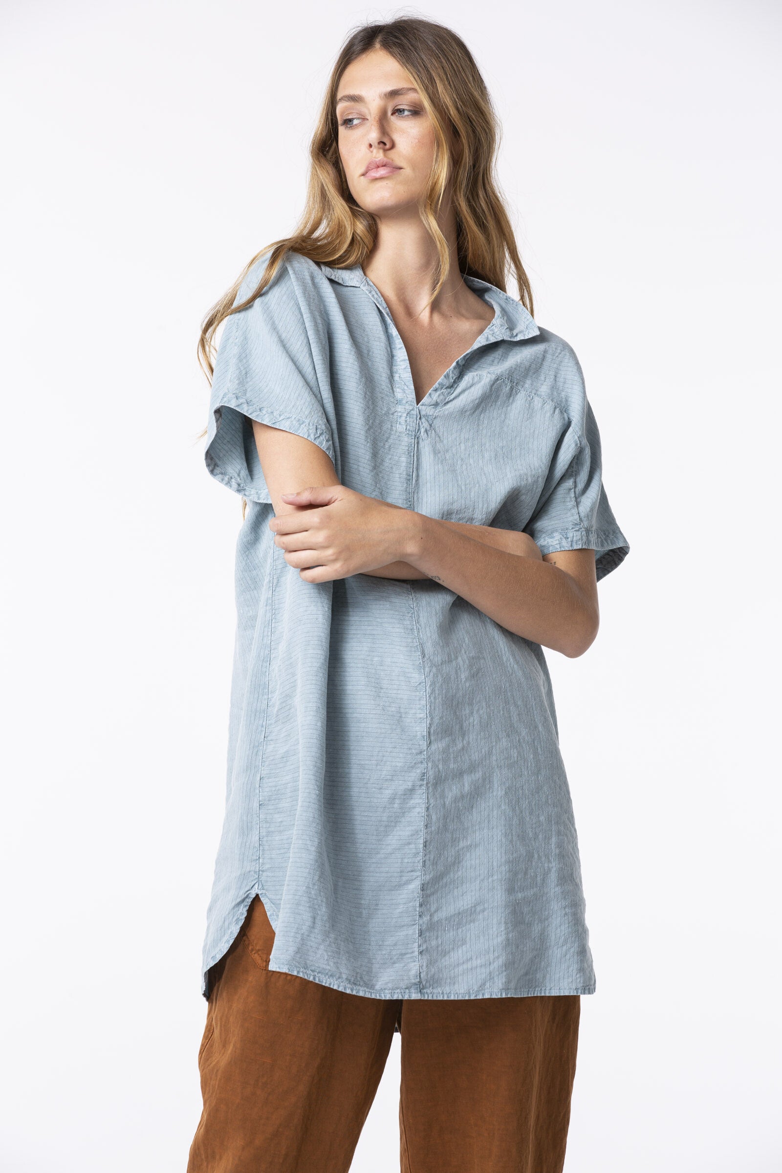 Ein Sommerliebling. Die zeitlose Hemdbluse Califona hat eine oversized Passform, überschnitte Schultern und fällt über die Hüfte. Der Hemdkragen und ein geschwungener Saum verleihen einen sportlichen Look, der durch eine Vintage-Färbung unterstrichen wird. Der luftig leichte Stoff aus einer Lyocell-Leinen-Mischung hat feine Nadelstreifen und wurde in Deutschland gewebt.