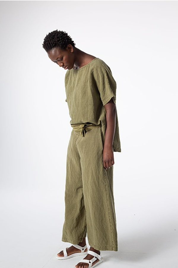 Leinen-Lyocellmischung, im Teil gefärbt für einen Vintage-Look. Unregelmäßigkeiten in der Färbung und strapazierte Kanten gehören zum Charakter der Ware. Exklusiv bei ISCHIKO.