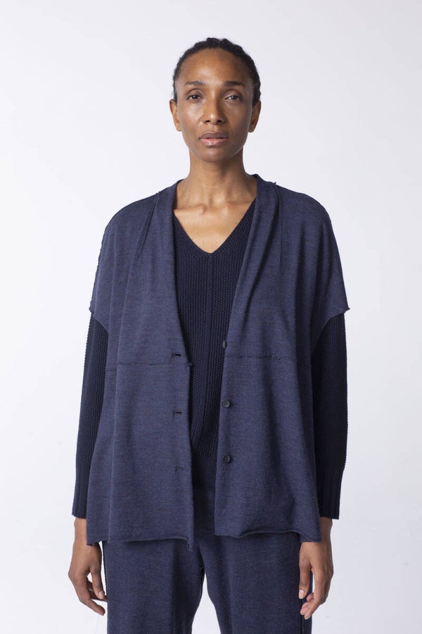 Klare Linien für den Winter. Die locker geschnittene Weste Aldama aus japanischem Wolljersey hat einen angeschnittenen Stehkragen und eine sanft runde Silhouette. Betonte Nähte machen den Style perfekt. Ein leichtes Basic, das man einfach überziehen kann.