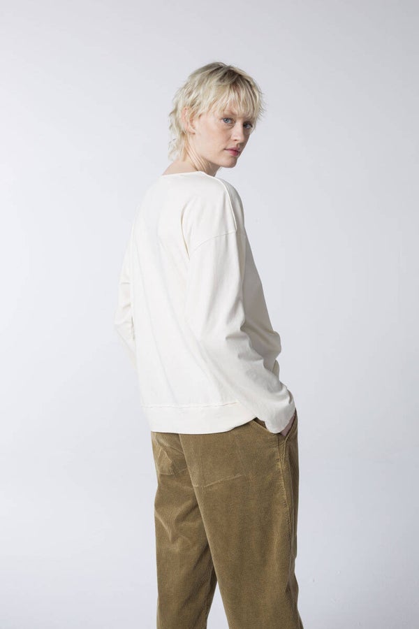 Weicher Baumwoll-Stretch-Jersey, im Teil gefärbt für einen Vintage-Look. Unregelmäßigkeiten in der Färbung und strapazierte Kanten gehören zum Charakter der Ware. Exklusiv bei ISCHIKO.
