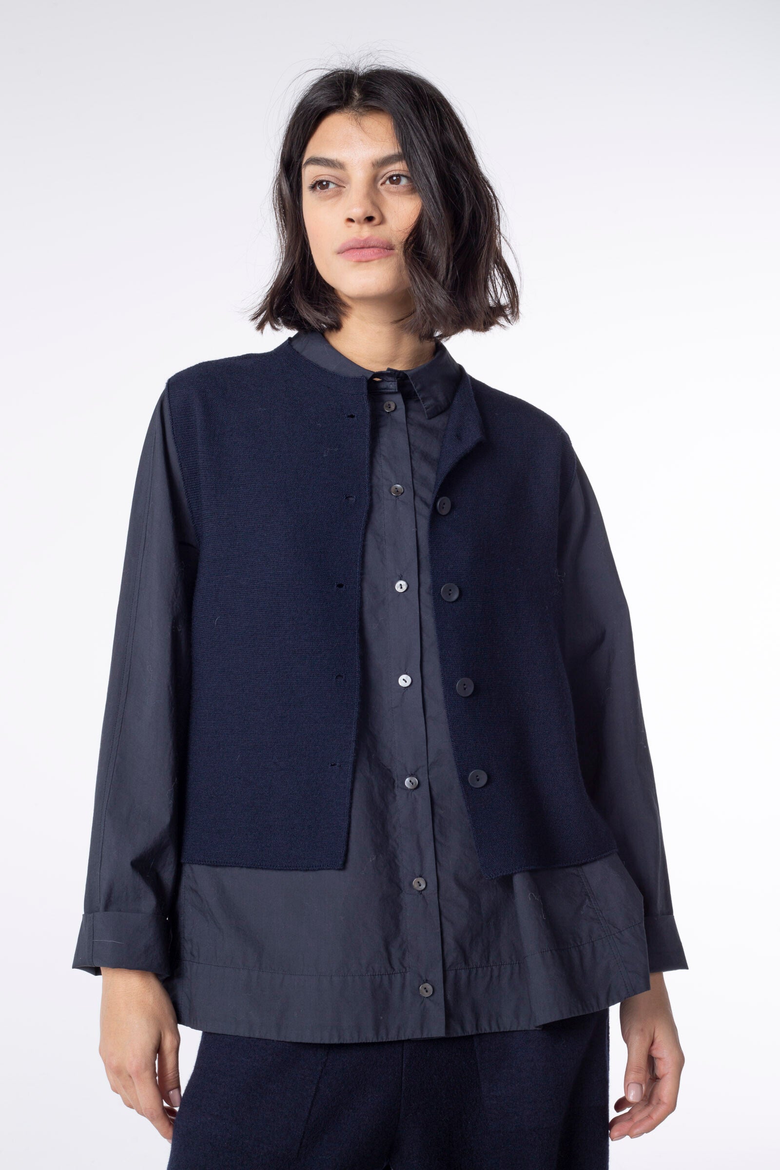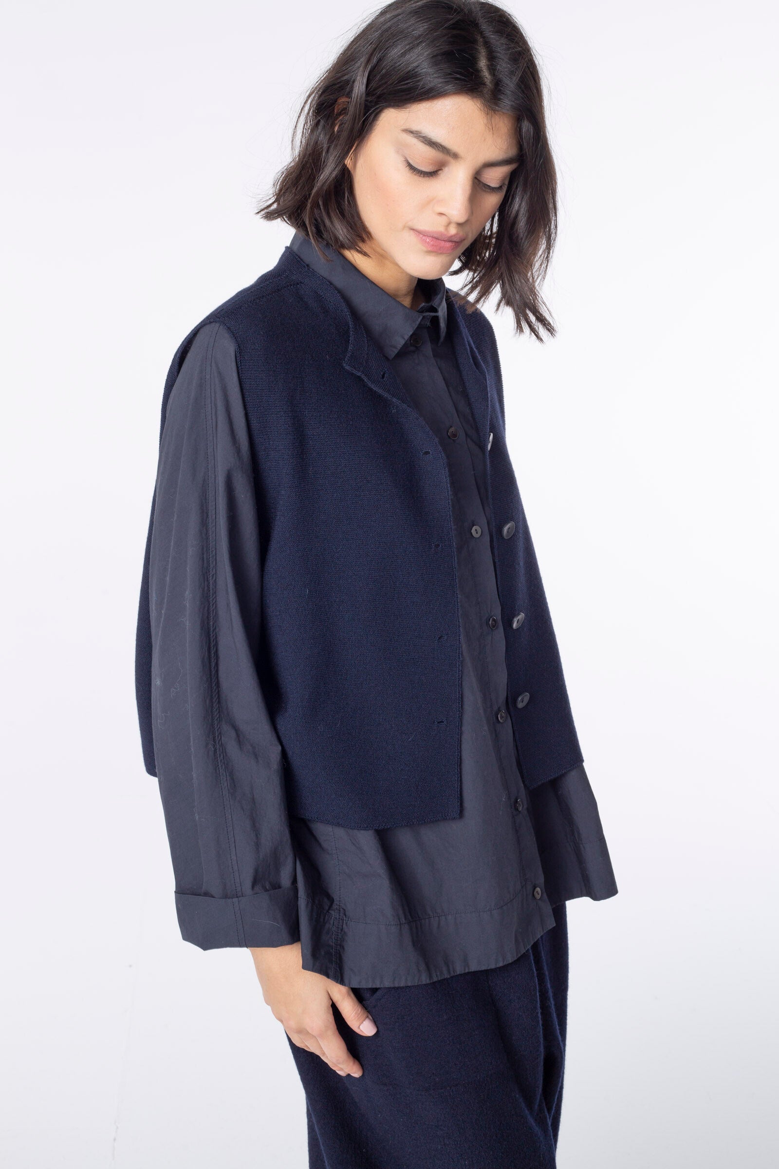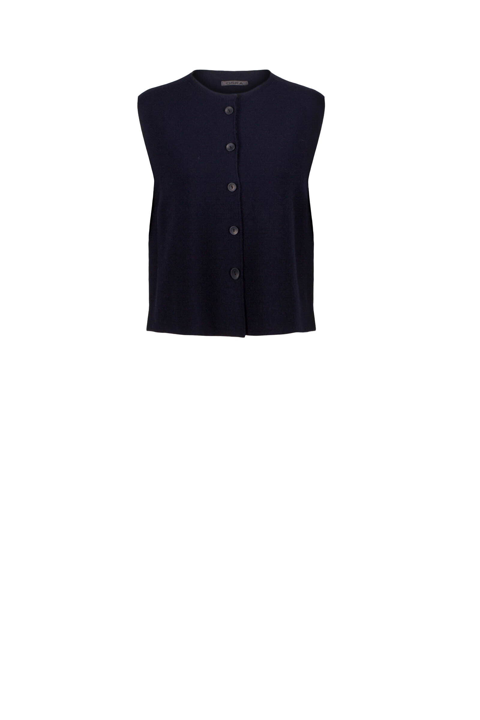 Die gerippte einreihige Weste Usanta wurde aus reiner Merinowolle in Italien nahtlos gestrickt - so ist sie besonders angenehm zu tragen. Sie hat eine kastenförmige kürzere Silhouette und ist perfekt für Lagenlooks im Winter.