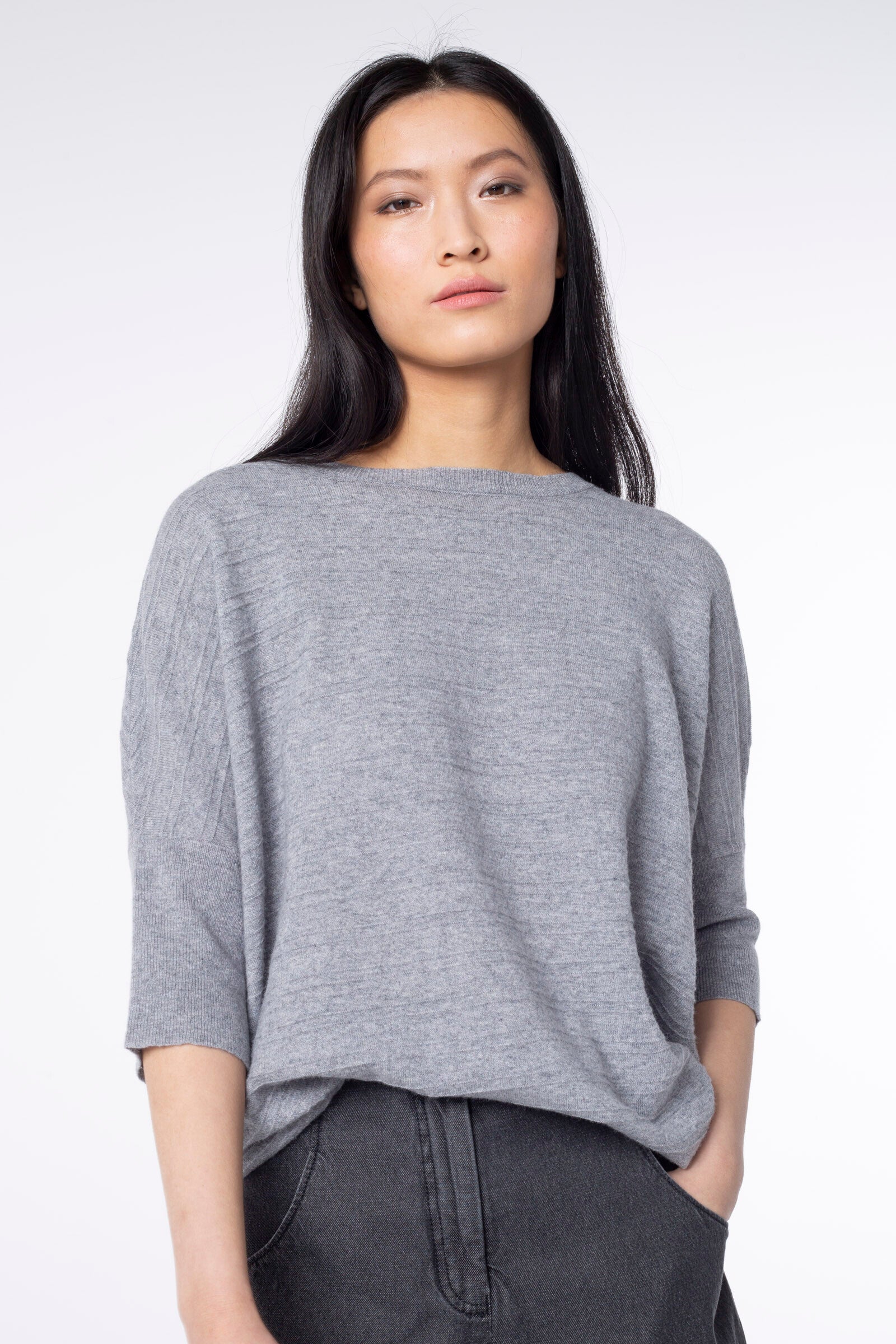 Der locker geschnittene Pullover Guinnea hat eine oversized Passform, ein dezentes Rippenmuster und wurde aus einer edlen Mischung aus Wolle, Kaschmir und Seide gestrickt. Er hat einen Bootausschnitt, gerippte Bündchen, seitliche Schlitze und überschnittene Schultern, durch die eine legere Silhouette entsteht.