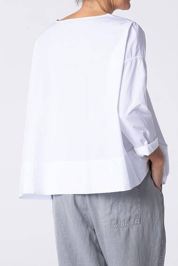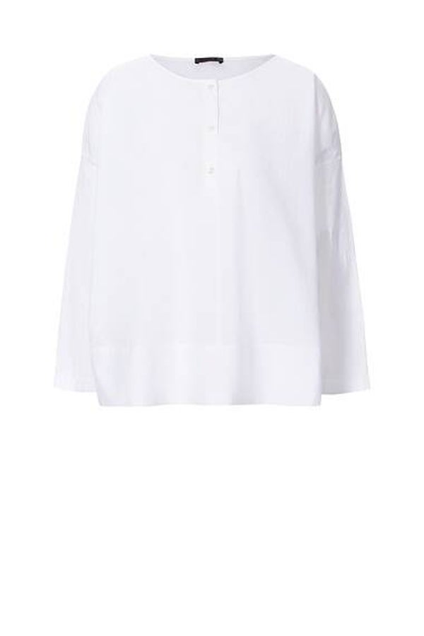 Schlicht und elegant. Bluse Gundaa aus reinem Baumwoll-Popeline hat eine zeitlose Ästetik. Diese komfortable Oversized-Bluse hat eine kleine Pololeiste mit Knöpfen vorne, einen Bootausschnitt und einen geschwungenen Saum der für zusätzliche Bewegungsfreiheit sorgt. Ein Lieblingsteil für das ganze Jahr.
