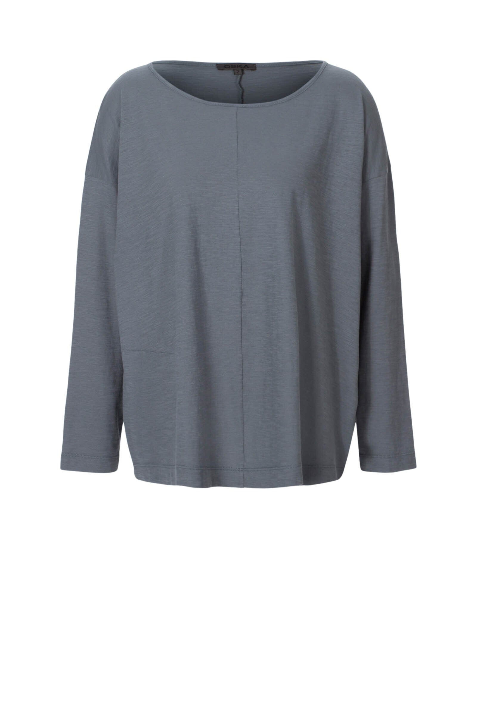 Das langärmelig Shirt Thiiema ais einem Bio-Baumwoll-Jersey mit Leinenoptik hat überschnittene Schulter, wodurch eine vorteilhafte Silhouette entsteht. Ein Boot-Ausschnitt und eine Naht vorne geben diesem minimalistischen Basic eine besondere Note