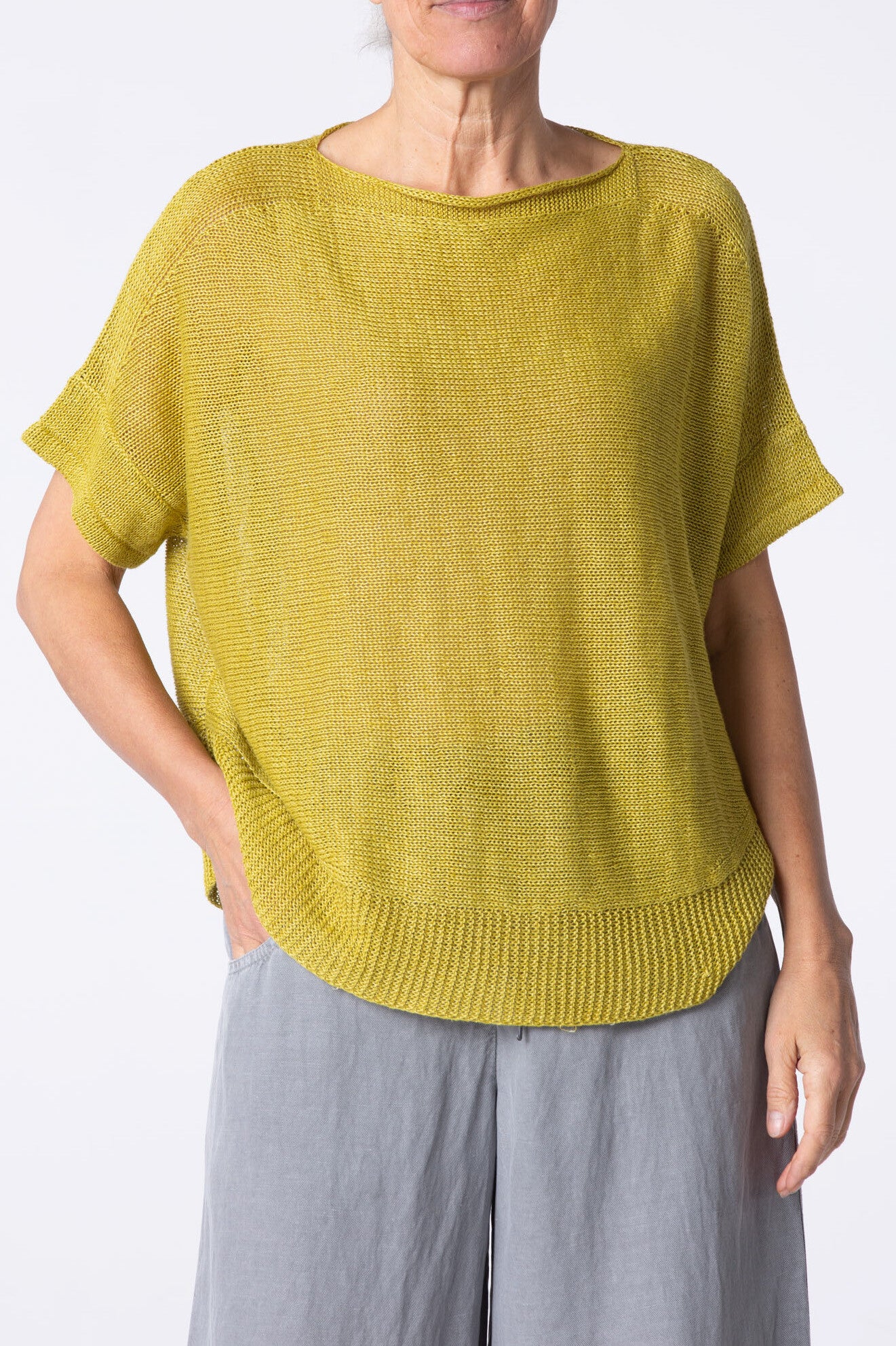 Pullover Margareet wurde aus reinem Leinen gefertigt, hat kurze Ärmel, einen Bootausschnitt und einen geschwungenen Saum. Er hat eine locker kastige Silhouette. Gerippte Abschlüsse geben diesem Alltagsklassiker einen strukturierten Look.