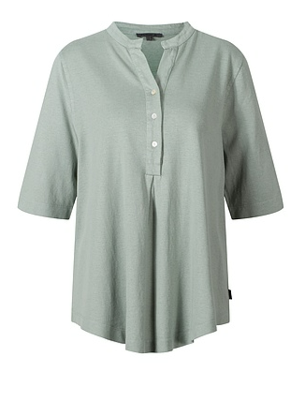 Das Shirt Avantea aus einem Hanf- und Bio-Baumwoll-Jersey hat einen kleinen Stehkragen mit kurzer Knopfleiste und 3/4-Ärmel zum Aufrollen. Ein Faltendetail vorne und eine Schulterpasse hinten unterstreichen die A-linige Passform.
