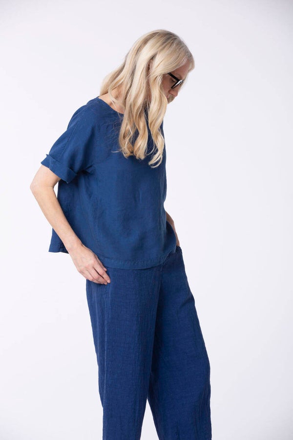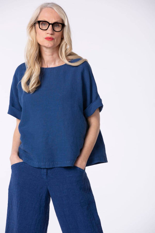 Bluse Vicaare ist ein schlichtes schönes Sommertop. Gefertigt aus reinem, atmungsaktivem Leinen hat es eine vorteilhafte A-Linie, die durch raffinierte Teilungsnähte betont wird. Sie hat einen runden Ausschnitt, kurze Ärmel, die man umschlagen kann und einen breit gesteppten Saum.